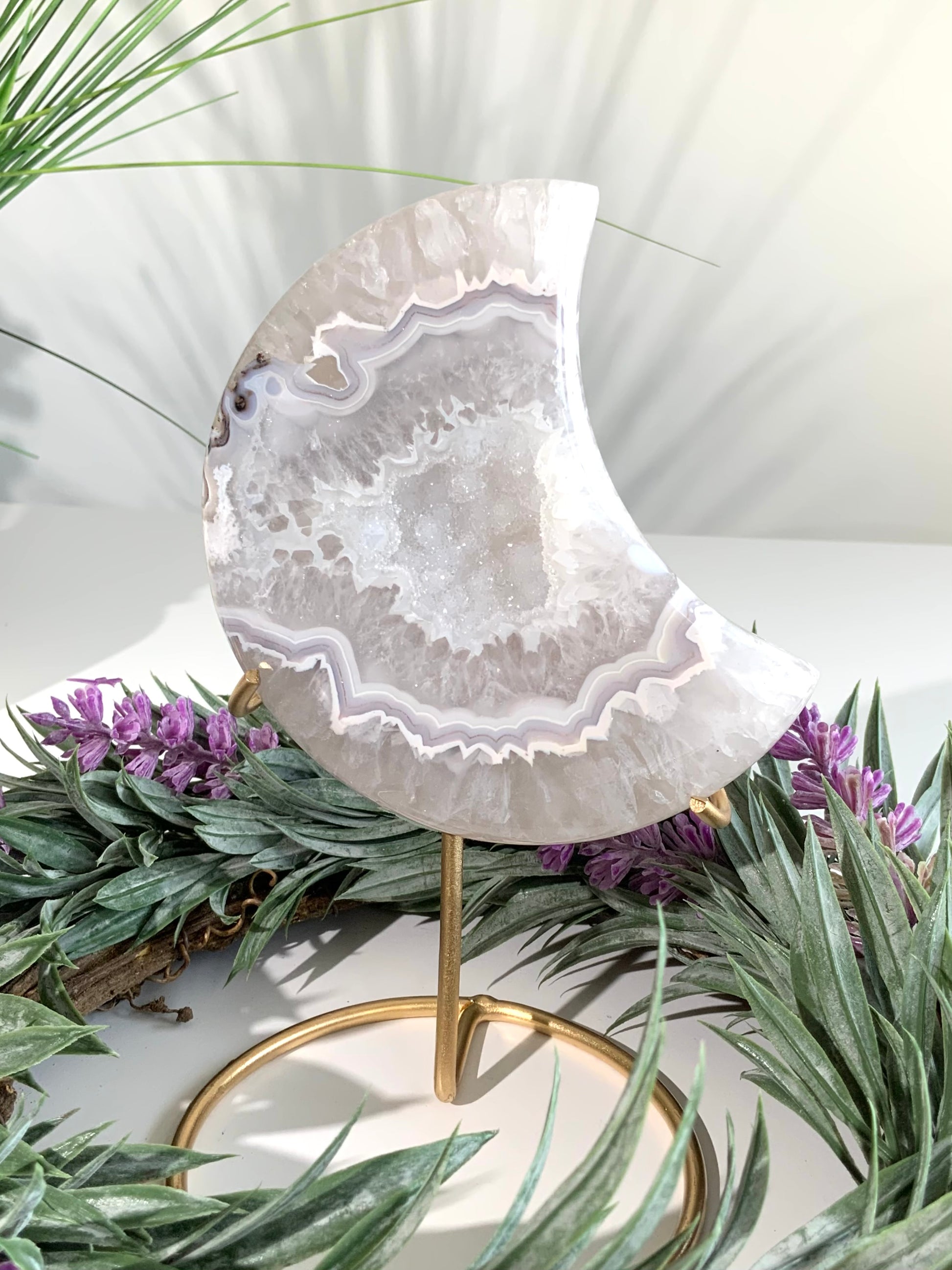 Agate Moon with Druzy -F