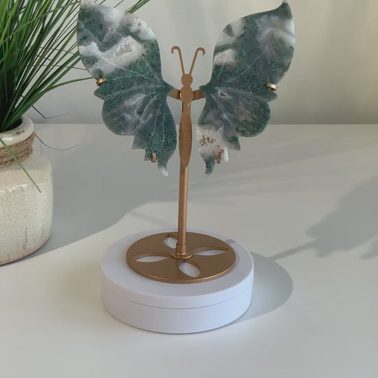 Moss Agate Butterfly on Stand | Transformation • Growth • Nature Energy